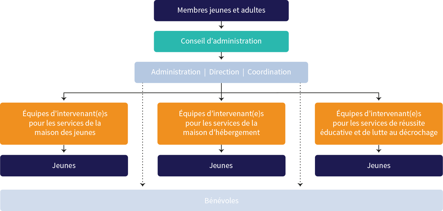 Les affaires de la Maison Jeunes-Est sont administrées par un conseil d'administration composé de neuf (9) membres.
